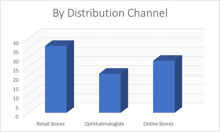 回答 – 調査中に、流通チャネルに基づいて、眼科医、小売店、およびオンライン ストアに分割されていることがわかりました。小売店セグメントが最大のシェアを占めました。小売店セグメントは、小売店が提供する割引と大規模な店舗チェーンの浸透と組み合わせて、小売店で手頃な価格で高度な製品を発売するメーカーのイニシアチブに起因しています。