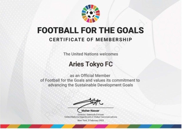 「我々エリース東京FCでは地球規模での課題であるSDGsを、当クラブのミッションである”関わる全ての人の豊かなフットボールライフを創造する”ことに照らし合わせ、活動してきました。この度の国連からの採択は、その取り組みが着実に進み評価されたものとして大変光栄に思っております。これからも日本一のSDGs実践のサッカークラブを目指し、取り組みを推進してまいります」