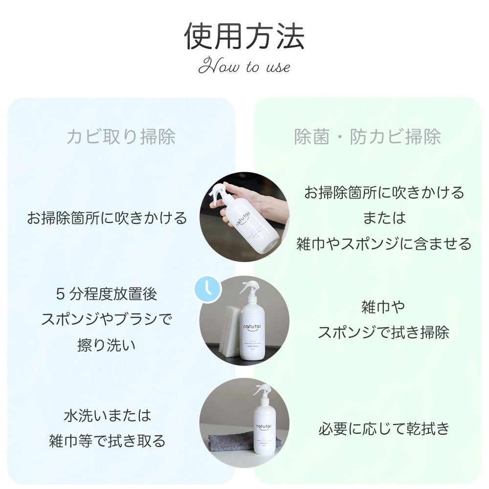 natutolはカビ取り掃除後の二度洗いや防カビのスプレーは必要ありません。