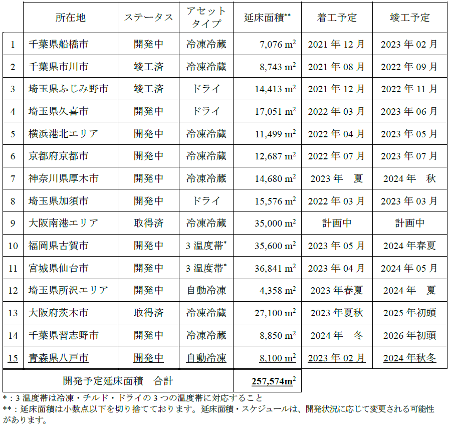 当社は、EC市場の拡大による物流施設需要の高まりや、2030年のフロン規制に向けた冷凍冷蔵倉庫の設備投資、冷凍食品の消費増加による冷凍冷蔵倉庫の需要拡大などを受け、物流施設開発をおこなっております。