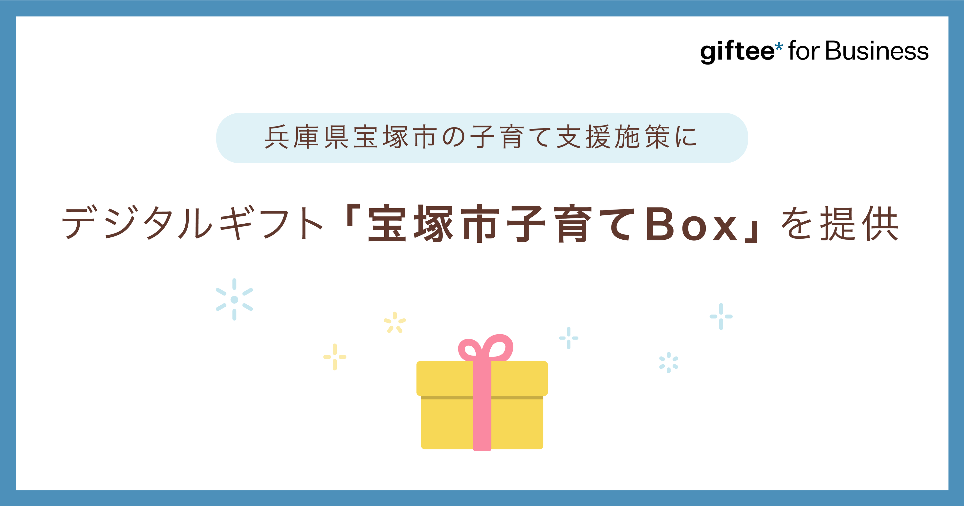 eギフトプラットフォーム事業(※1)を展開する株式会社ギフティ(本社:東京都品川区/代表取締役:太田 睦、鈴木 達哉/以下、ギフティ)は、デジタルギフトを活用した法人向けサービス「giftee for Business」(※2)を兵庫県宝塚市(※3)が2023年1月15日 (日)〜3月15日(水)の期間、18歳以下の子どもを持つ世帯に向けて実施する「宝塚市子育て世帯応援給付事業」に採択いただきました。これに伴い、対象世帯へ給付されるデジタルギフト「宝塚市子育てBox」を提供しておりますのでお知らせいたします。同Boxは「giftee for Business」の主力プロダクト「giftee Box®」(※4)を宝塚市オリジナル仕様にカスタマイズしたものであり、「giftee for Business」サービスとして、自治体向けにカスタマイズしたデジタルギフトを提供するのは今回が初となります。なお、本事業は日本旅行ビジネスソリューションズ株式会社(本社:大阪府大阪市/代表取締役社長:髙橋 秀実)フロントの下、ギフティ、株式会社ニッセン(本社:京都府京都市/代表取締役社長:羽渕 淳)との連携で行っております。
