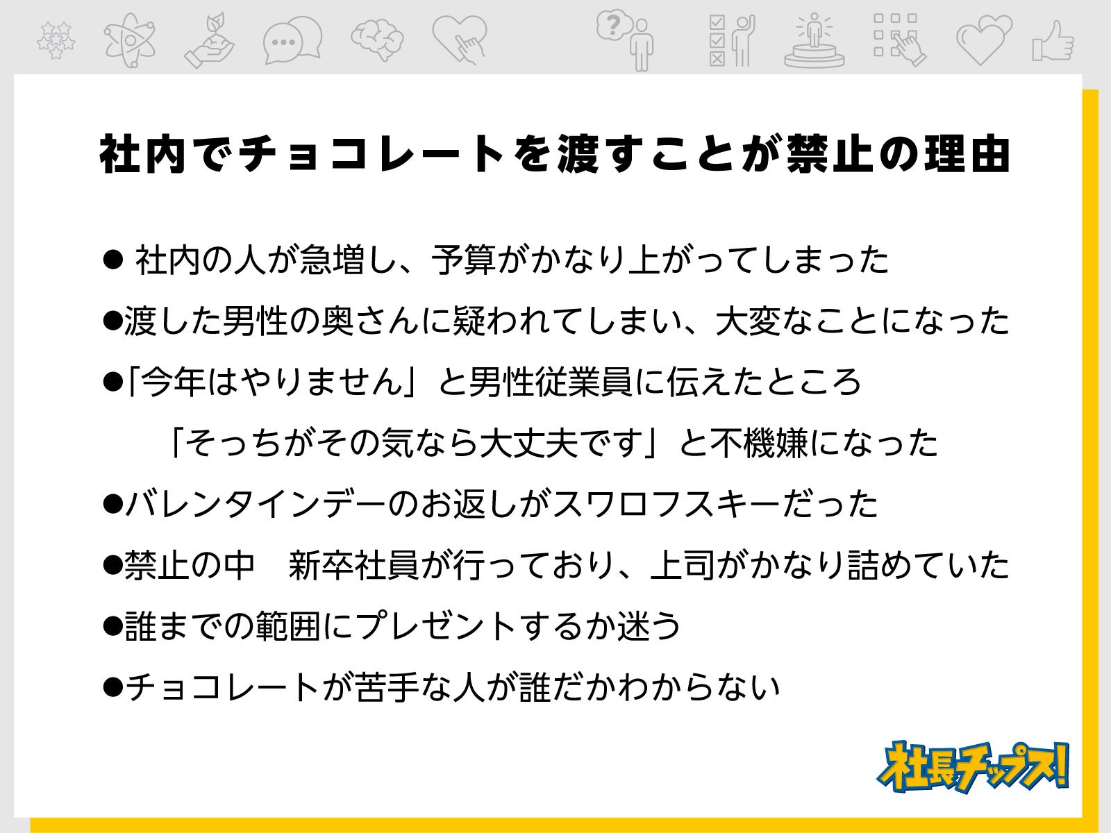 Q.社内でチョコレートを渡すことが禁止されている理由は?