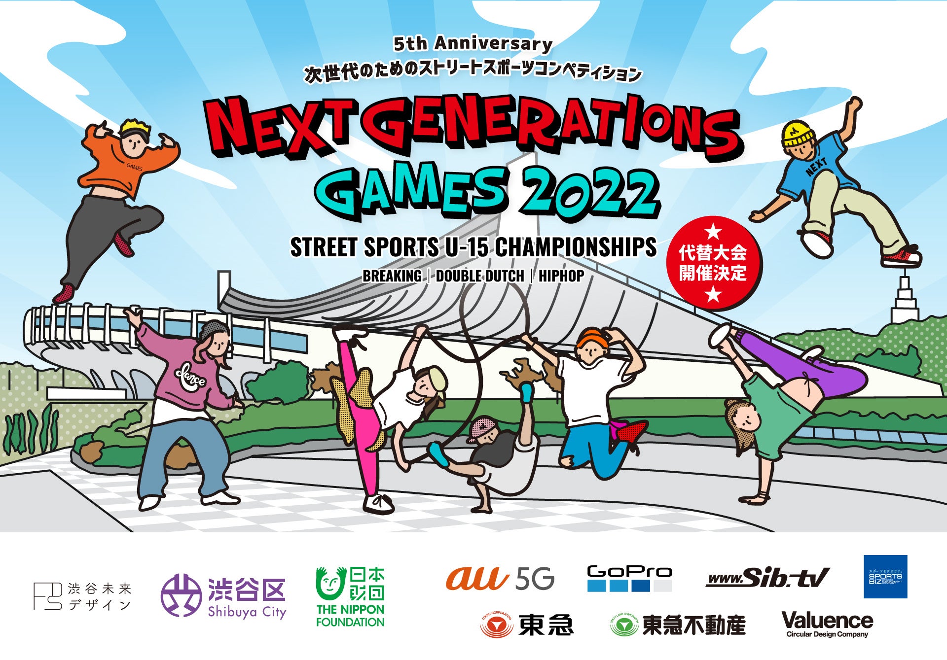 U-15 (中学生以下) を対象としたストリートスポーツコンペティション「Next Generations Games」は、2018年から継続して開催し2022年で5年連続5回目の開催を迎えました。代替大会の決定により、一度は中止となってしまった5周年を記念する大会を実施できることになります。「Next Generations Games 2022 代替大会」は、ダブルダッチとヒップホップを2月18日(土)に国立代々木競技場 第二体育館 特設会場にて、ブレイキンを3月11日(土)に渋谷区立北谷公園にて開催します。特に、2月18日(土)の開催については、第4回全日本ブレイキン選手権と連携し、公益社団法人日本ダンススポーツ連盟と共催で開催します。