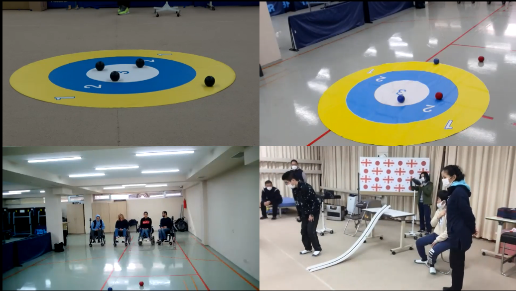 自己紹介や学校紹介、質問タイムで交流したあと、オンラインを活用した「ターゲットボッチャ」競技を通して交流を深めました。ターゲットボッチャの試合では、両チームが投球を重ねる度に大盛り上がりでした!