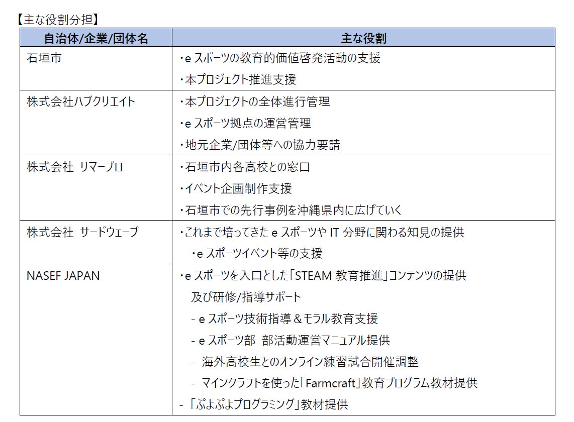 北米教育eスポーツ連盟(North America Scholastic Esports Federation:NASEF)は、eスポーツを通じて将来社会で活躍する人材を育成支援する国際団体です。現在は「eスポーツを入口としたSTEAM教育推進」に力を入れ、様々な教育プログラム コンテンツの開発を進めており、本プロジェクトでそのコンテンツの一部を初めて実践させていただきます。これまで私共が培ってきた知見やノウハウ・ネットワークを石垣市内の高校生や教育関係者の皆さんに提供し、「IT人材」「グローバル人材」育成のお手伝いをさせていただくとともに、石垣市プロジェクトの先進事例を全国各地に紹介し、全国にこの取り組みを広げていきたいと考えております。