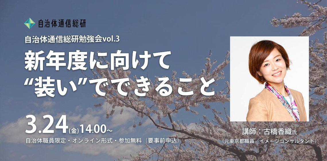 今回の勉強会では、元東京都庁職員でColor Commons 代表の古橋香織さんをお招きし、新年度に向けて、職場の雰囲気作りに使える“装い”の工夫や、公務員の服装に関して後輩や部下に指導をする際の方法を一緒に学んでいきましょう。