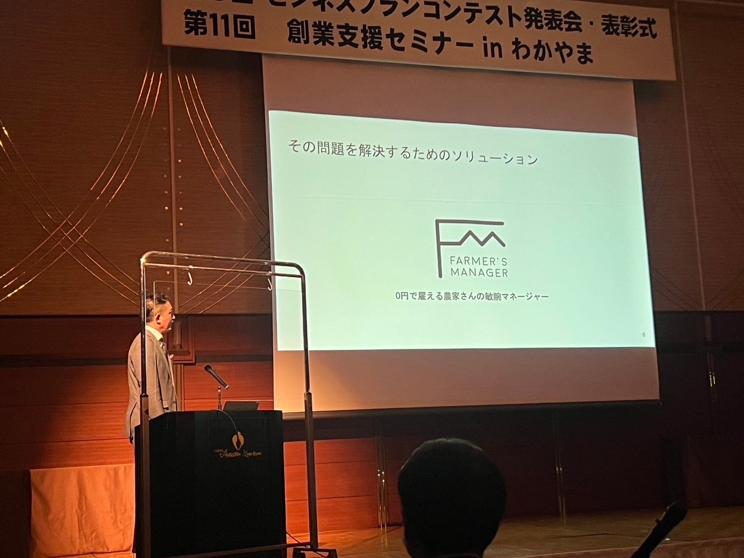 農家さんの課題解決を支援する株式会社Farmer’s Manager(本社:和歌山県有田市、代表取締役社長:吉田亮)が2023年2月12日にホテルアバローム紀の国で開催された創業支援セミナーinわかやま実行委員会主催「第8回元気わかやまビジネスプランコンテスト」一般の部で優秀賞を受賞したことをお知らせいたします。
