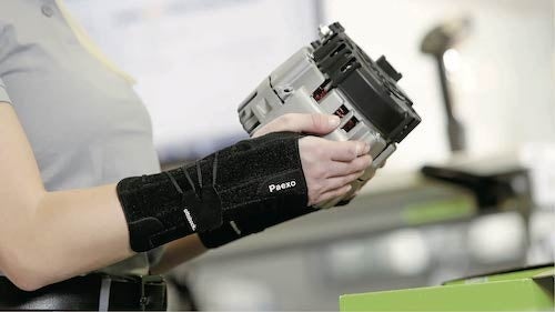 Paexo Wrist は、荷重のかかる荷物を扱う際に手首を効果的にサポートします。特に手首の炎症を治療するために開発された医療器具を基に作製されました。