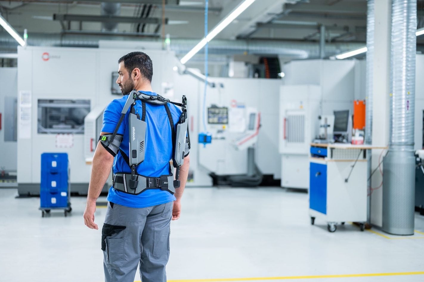 Paexo Shoulder は、日常的に腕を上げた状態や上向き作業により負担を負っている作業員をサポートする外骨格アシストスーツです。例えば、物流・自動車産業、造船等の組み立てラインでの上向きの頭上作業で肩関節や上腕にかかる負担を軽減します。