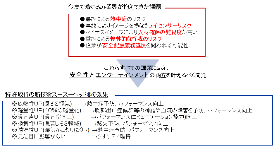 「スースーヘッド®」は、これまで着ぐるみ業界が抱えてきた様々な課題の最適解となるだけにとどまらず、パフォーマンスの向上をも期待できることから、エンターテインメントの面からみても優れた新技術です。昨年9月の「スースーヘッド®」 発表から既に、国際的なスポーツ連盟やテーマパークから選出される等、国内外から数多くの実績と信頼を積み重ねて参りました。「スースーヘッド®」が拡がることで、アクターの負担が軽減され、より良い着ぐるみ文化の発展に繋がることを期待しています。