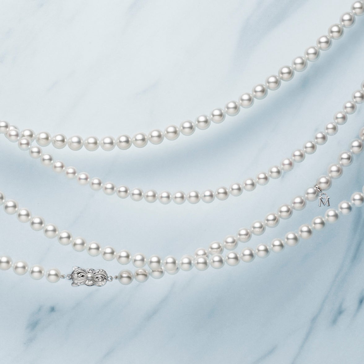 MIKIMOTOは2023年より、パールネックレスの糸を従来の絹糸から再生ポリエステル繊維100%の糸に変更※いたします。