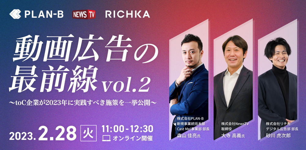 ※今回ご提供いただく個人情報は、株式会社NewsTV・株式会社PLAN-B・株式会社リチカのプライバシーポリシーに基づき厳重に管理いたします。