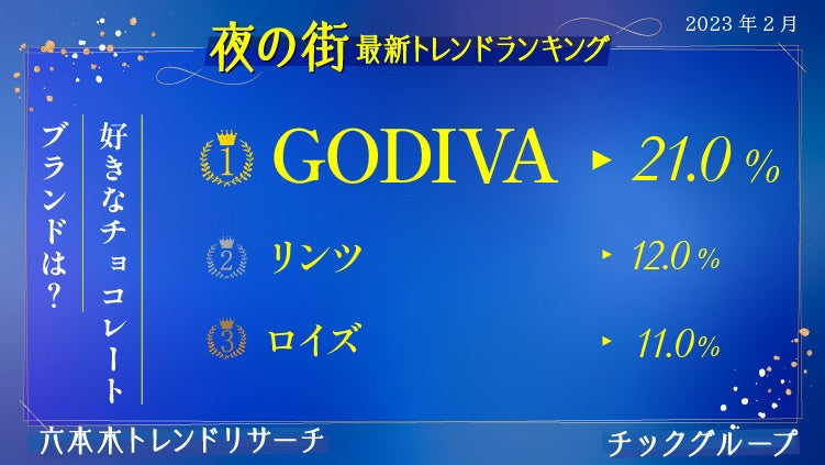 好きなチョコレートブランドについては、「GODIVA」(21.0%)、「リンツ」(12.0%)、「ロイズ」(11.0%)と比較的リーズナブルなブランドもランクインしております。少数派としてはやはり高級ブランド思考も。「デメル」(3.0%)、「パティスリー・サダハル・アオキ・パリ」(3.0%)などがあげられてます。