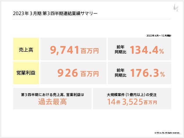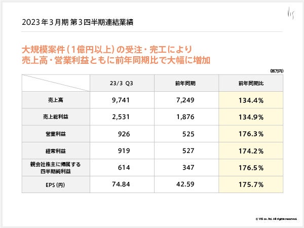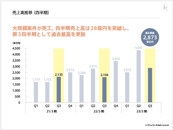 大規模案件の完工により、四半期売上高は28億円を突破し、第3四半期として過去最高を更新しました。