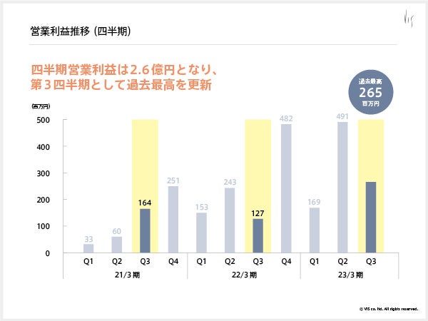 四半期営業利益は2.6億円となり、第3四半期として過去最高を更新しました。
