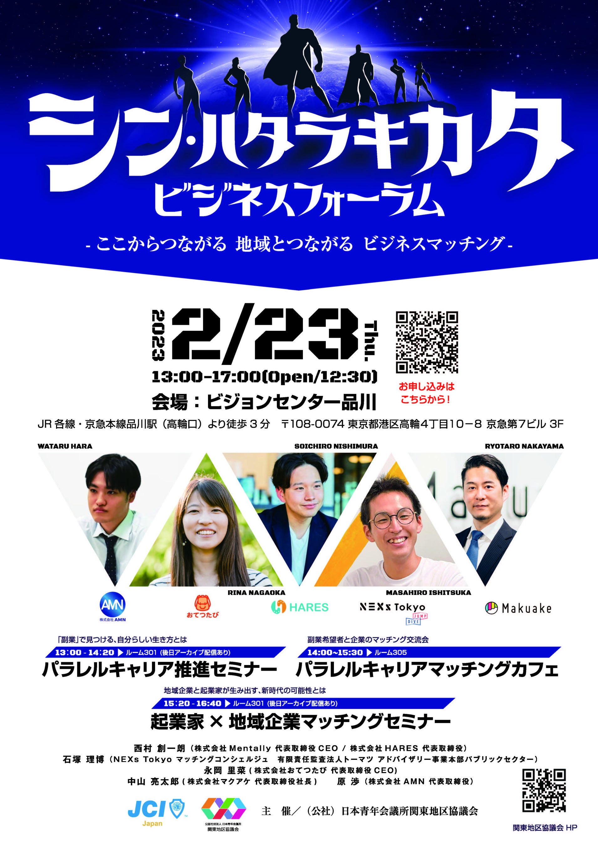 公益社団法人日本青年会議所関東地区協議会は、2023年2月23日(木)、東京都品川区のビジョンセンター品川にて「ここからつながる 地域につながる 起業家×地域企業マッチングセミナー」を開催致します。