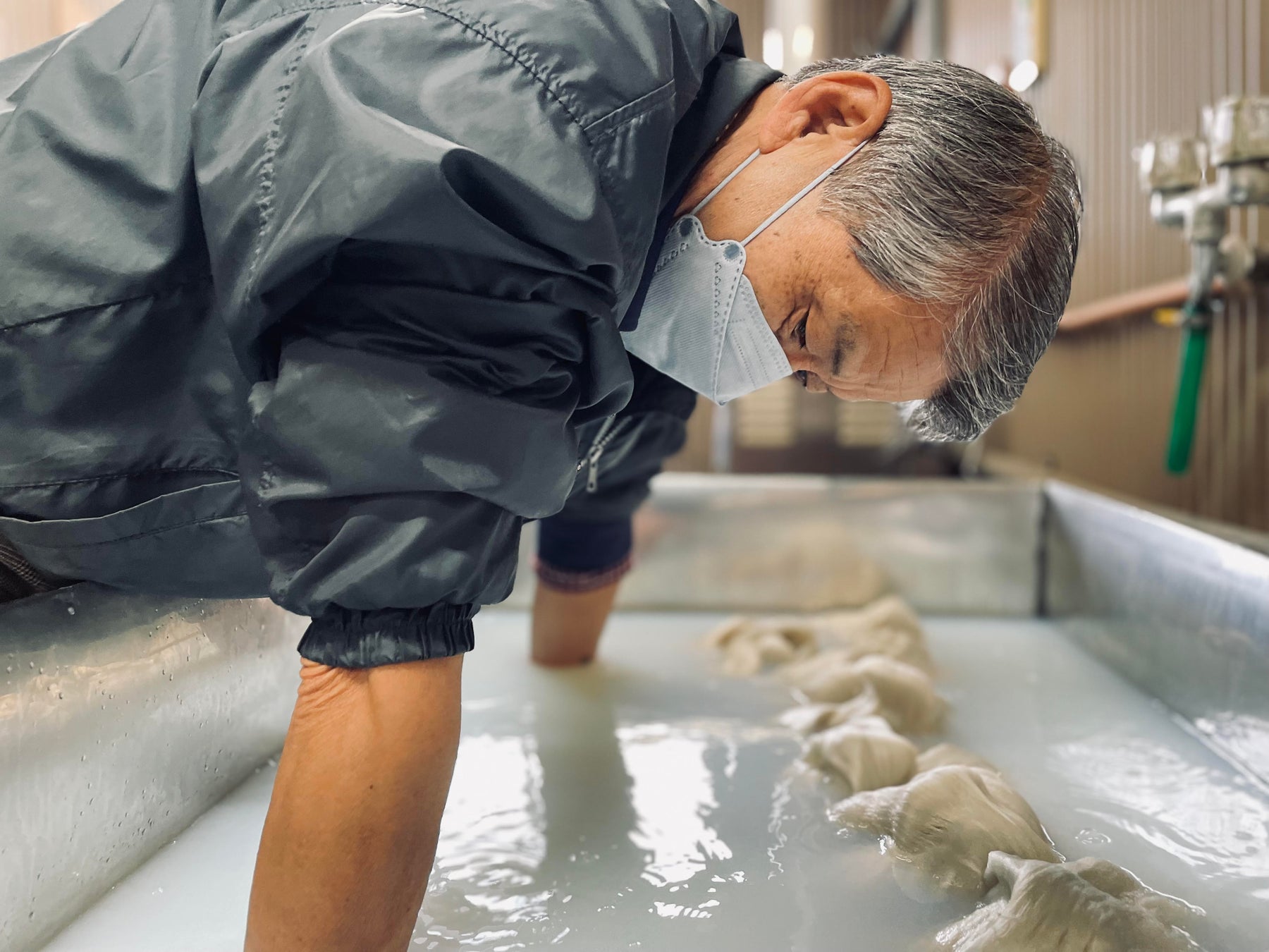 全盛期には200人いた社員も今では10人以下の規模になっており、従業員の年齢が50代以上となっています。今、職人の高齢化や絹の高騰・中国の台頭・撚糸工場や通糸工場が次々と廃業に追い込まれていることなど問題は山積みです。