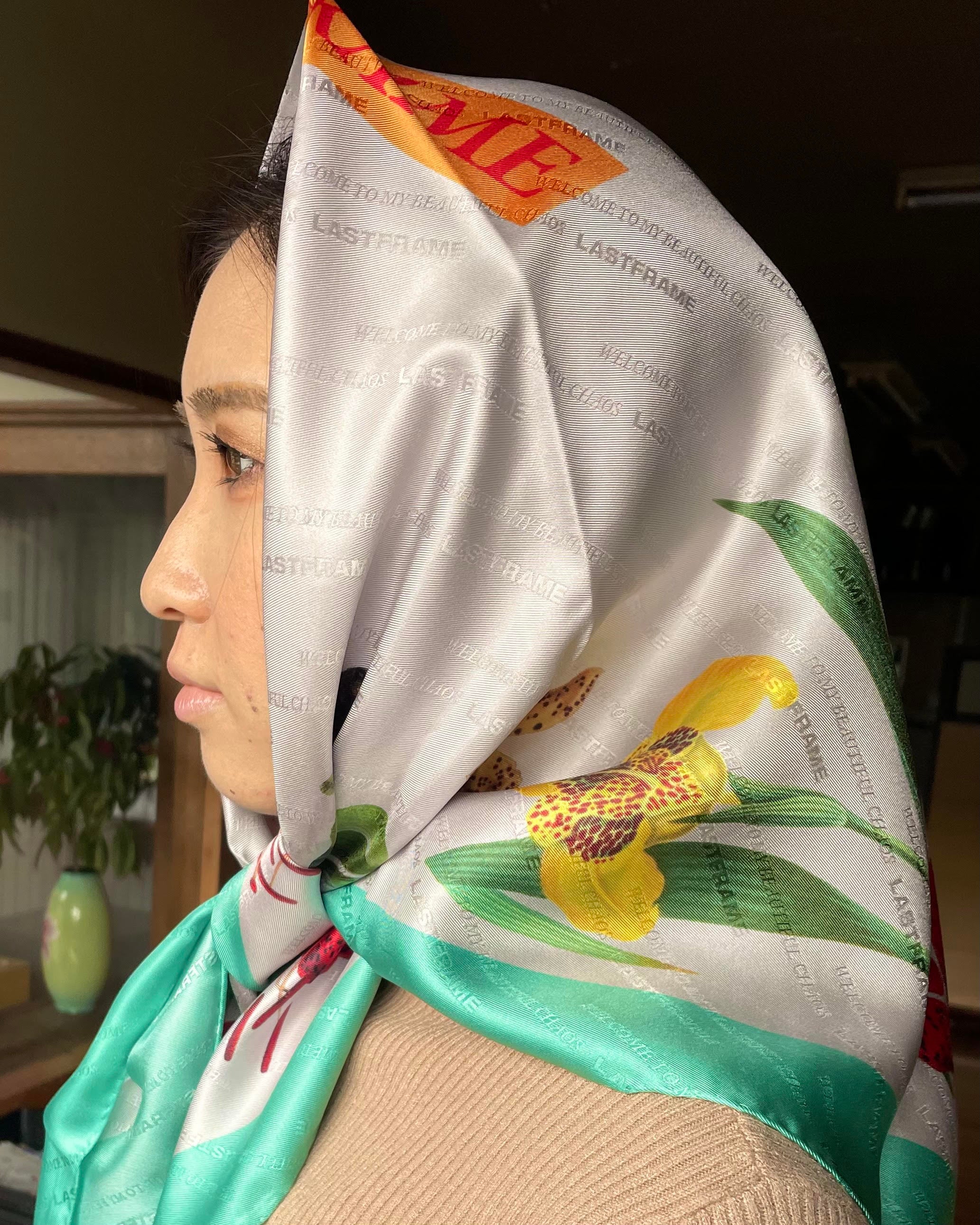 浮き上がって見えるこの生地がジャカード生地(写真 英語文字)普通のシルクの生地より光沢、ツヤ、高級感がまします。また触っていただけないのが残念なのですが、手触りは繊細でなめらかで、触り心地がよく日本人の繊細さが生地にも表れています。