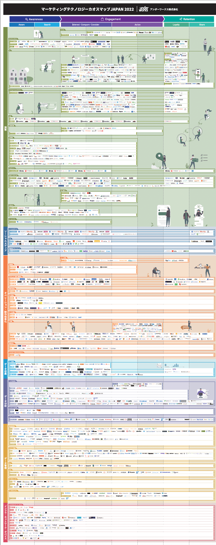 2017年より毎年発表しているマーケティングテクノロジーカオスマップは、本2022年版で6回目のアップデートを迎えます。広告、データ管理、ソーシャルメディア、プライバシー関連など、国内で最も広範囲に捉える”マーケティングテクノロジー”を独自調査に基づき分類・一覧化しています。
