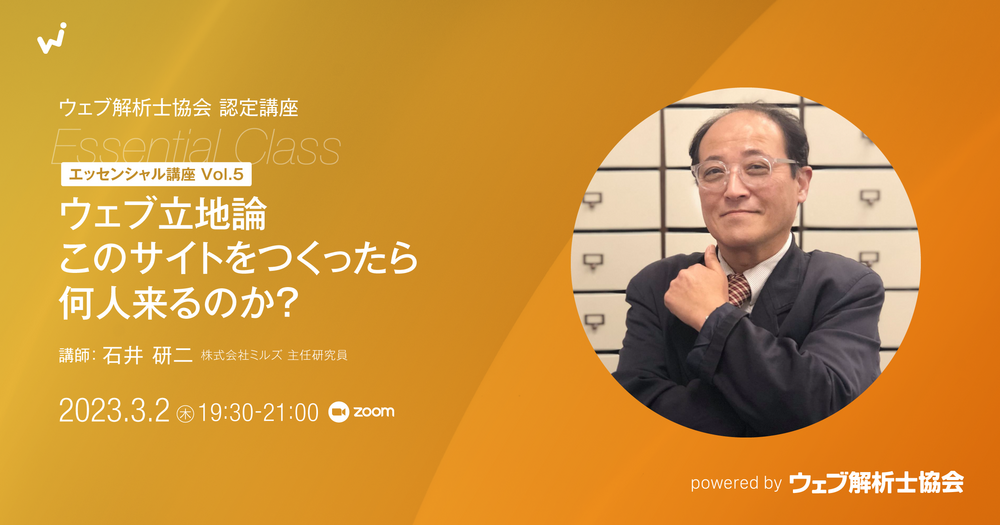 ホームページをつくったら何人が見に来るのか? 解析分野のパイオニアであり、重要な指標「直帰率」の名付け親として知られる石井研二氏にご登壇いただきます。