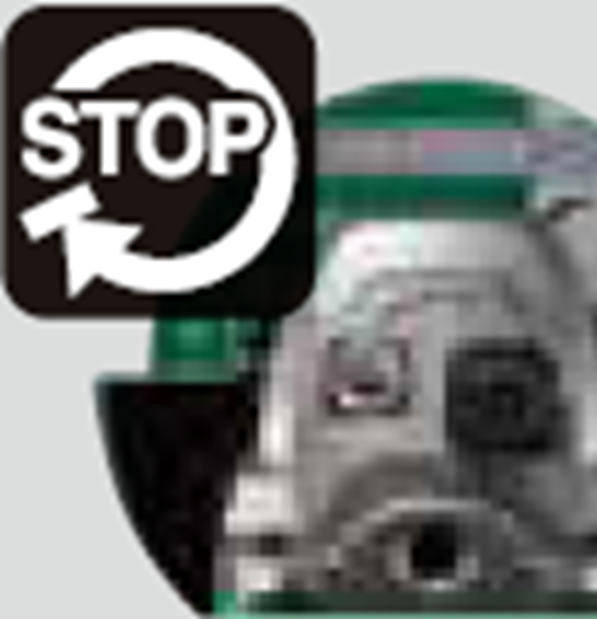 キックバックとは、回転中のダイヤモンドカッターや切断トイシに急激に大きな負荷がかかり回転数が急速に低下したとき、反発によって材料もしくは機体が作業者側にはじき飛ばされる現象です。キックバック軽減システムでは、ダイヤモンドカッターや切断トイシの挟み込み等によりモーターの回転速度が急速に低下したとき、瞬時にモーターを停止することでキックバックの動きを軽減します※3。