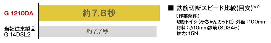 10.8Vでも14.4V製品(当社従来製品G 14DSL2)と同等の作業スピードを実現、よりパワフルになりました。