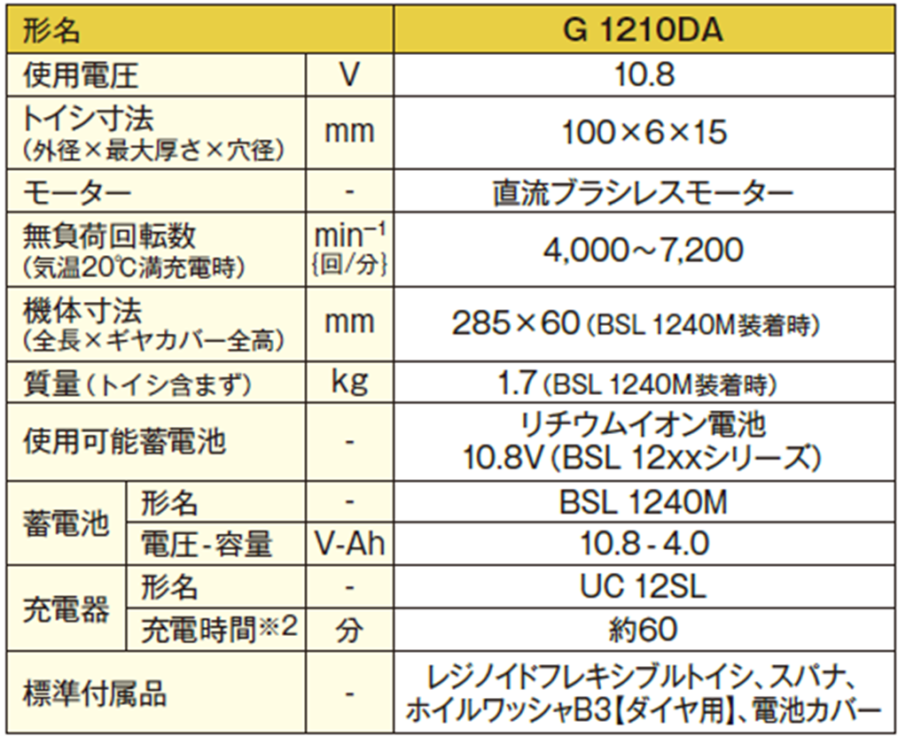 ※1 2022年12月現在。国内電動工具メーカーにおいて(当社調べ) (10.8V100mmコードレスディスクグラインダ)