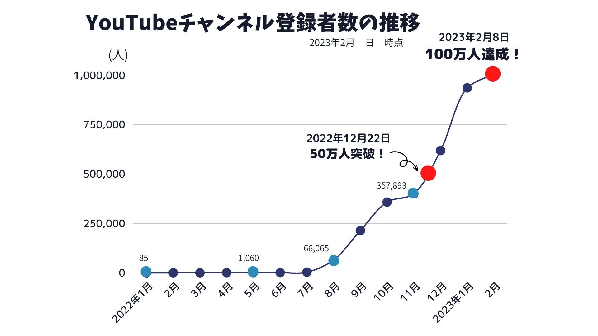 • YouTubeを開始後ショート動画を毎日投稿、わずか約1年で100万人登録者数達成