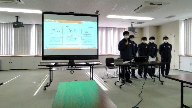 今回の聖籠町への政策提案には、聖籠町より西脇道夫町長をはじめ、副町長、教育長、各課の担当者に参加していただきました。JAPANサッカーカレッジは6グループに分かれた学生が、「どろんこサッカーと農業体験」、「SEIRO National Festival」、「日本・聖籠町を共に学ぼう」、「ハザードマップマラソン大会」、「託児所併設の空き家カフェ」、「町の住民に健康を!保健衛生対策教室プロジェクト」の提案を実施しました。