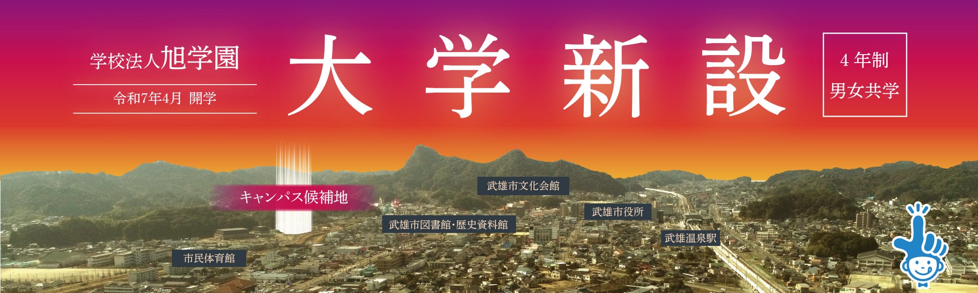 佐賀県西部エリアには大学が設置されておらず、子どもたちが夢を実現できる選択肢を増やしていくことが必要だと考え、市長2期目より学校誘致に積極的に動いてきました。武雄市で初めての大学設置を発表できて感無量です。旭学園様はじめ、関係者の皆様に心から感謝申し上げます。