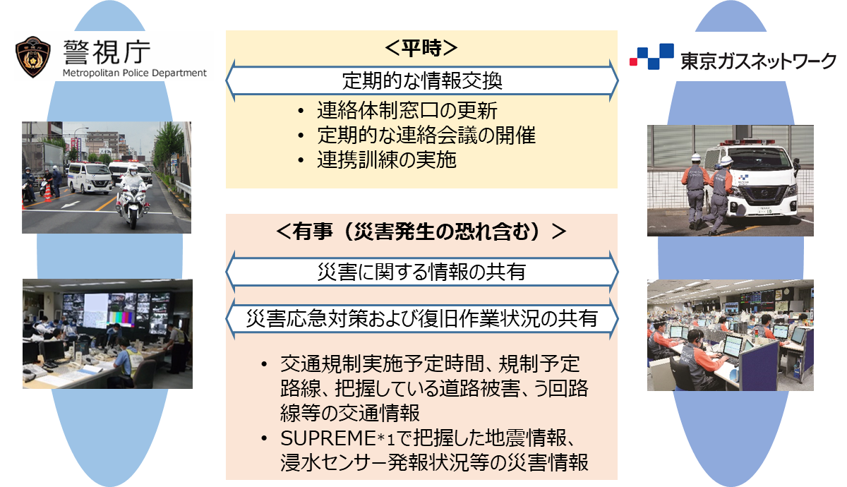 今後、本協定に基づき、平時から連絡窓口の共有や定期的な情報交換を実施するとともに、災害発生時には、災害に関する情報を相互に有効活用することで、災害応急対策の円滑化および都市ガスの早期復旧をめざします。