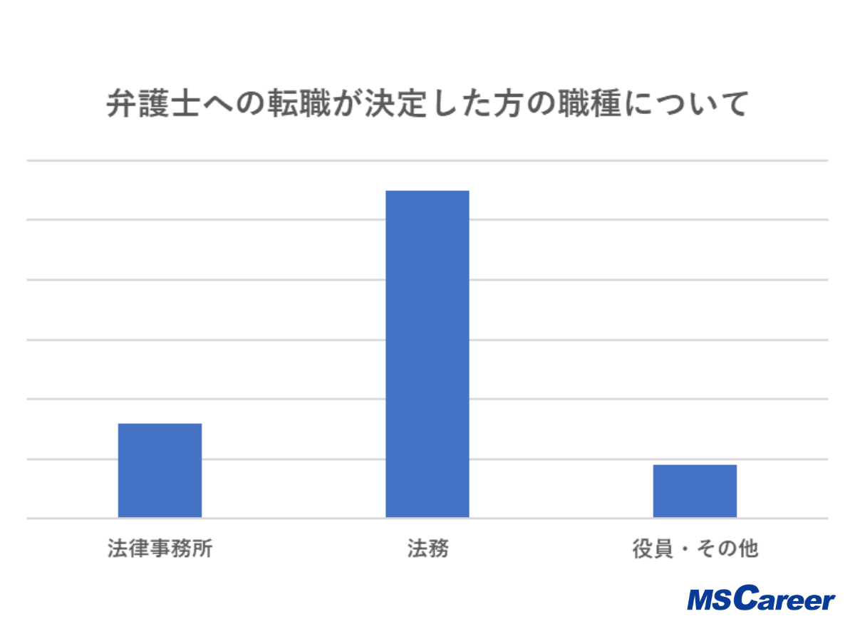 - 転職決定者の約7割(68.8%)が企業法務の職種で転職