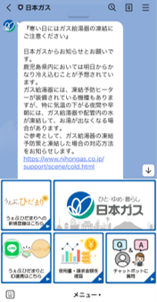 当社は、日本ガス株式会社(本社:鹿児島県鹿児島市、代表取締役:津曲貞利、以下「日本ガス」)のLINE公式アカウントを立ち上げ、日本ガスのお客さまに向けて、新たなお客さま満足度向上を目指したプラットホームを創出しました。サービス開始から約3ヶ月、LINE公式アカウントは、早くも1000件を突破。LINE登録者の約60%が会員制WEBサービス「うぇぶ.ひだまり」と連携済み。当社は、日本ガスの会員制WEBサービス「うぇぶ.ひだまり」の利便性向上を図るために、お問い合わせ対応可能なチャットボットの利用開始とLINE公式アカウントと連携し①エネルギー使用料の通知②お客さまの契約状況に応じたサービス配信(今後予定)を構築しました。今後も、お客さまの利用拡大に合わせた本格的なLINE公式アカウント活用を目指し、地域密着型のお客さま満足度向上を図ってまいります。