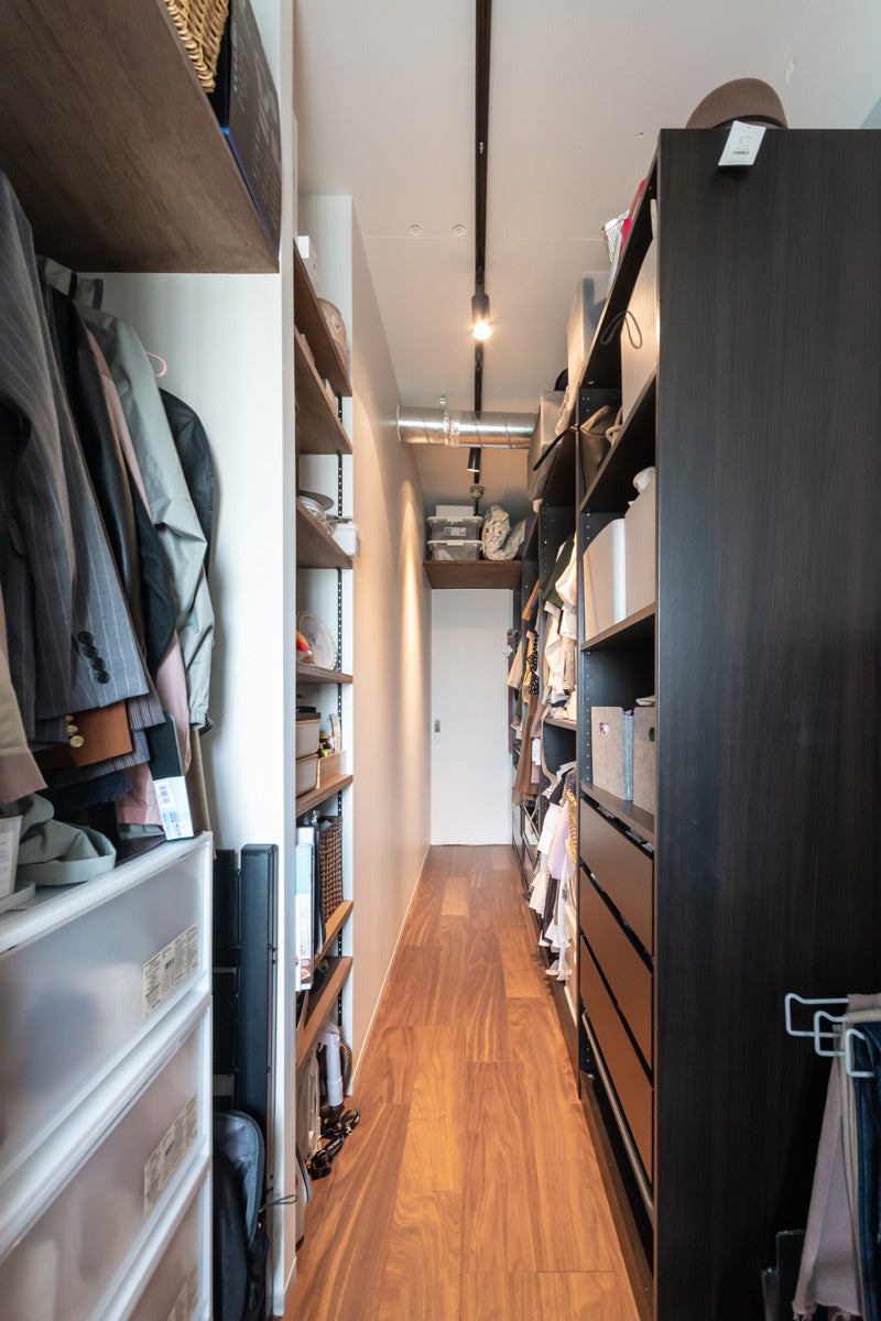 洋服は、賃貸物件では居室に備えつけられたクローゼットに収納することがほとんどですが、リノベーションでウォークインクローゼット(WIC)をつくり、猫が出入りできないようにすれば、洋服に毛がつきづらくなります。