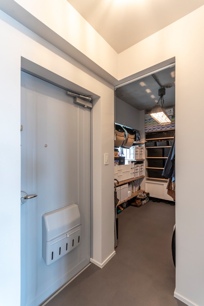 アウトドアグッズやスーツケース、ベビーカーなどの収納に便利な広い土間玄関は、ペットグッズを置くのにも重宝します。