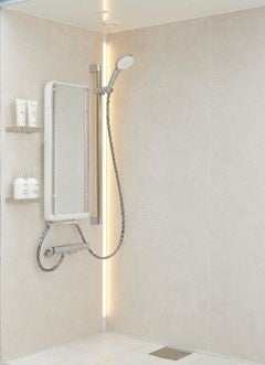 シャワーユニット「NS」も今回リニューアルいたします。大浴場があるホテルや、インバウンド配慮で浴室のないホテル水回り空間も増加している中、浴槽がなくとも体を温めて、しっかり旅の疲れを癒せるようにボディハグシャワーをオプション設定に追加いたします。ボディハグシャワーはハンドシャワーと比べ深部体温が下がりにくく、しっかり体を温めることができ、また浴槽浴に比べると使用水量も抑えることができ、より快適かつエコな浴室空間を実現します。