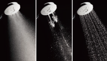 やわらかな肌あたりのシルクミスト吐水、ほどよい強さとリズムが織りなす水流で心地よいマッサージ感を得られるパワーマッサージ吐水、空気をたっぷりと含んだ肌当たりの良い大粒の水滴ですっきりと洗い上げるアクアスプレー吐水と3つの吐水モードをもったシャワーでありながら、端正で洗練されたデザインを有するシャワーをBSWでは標準で装備しました。