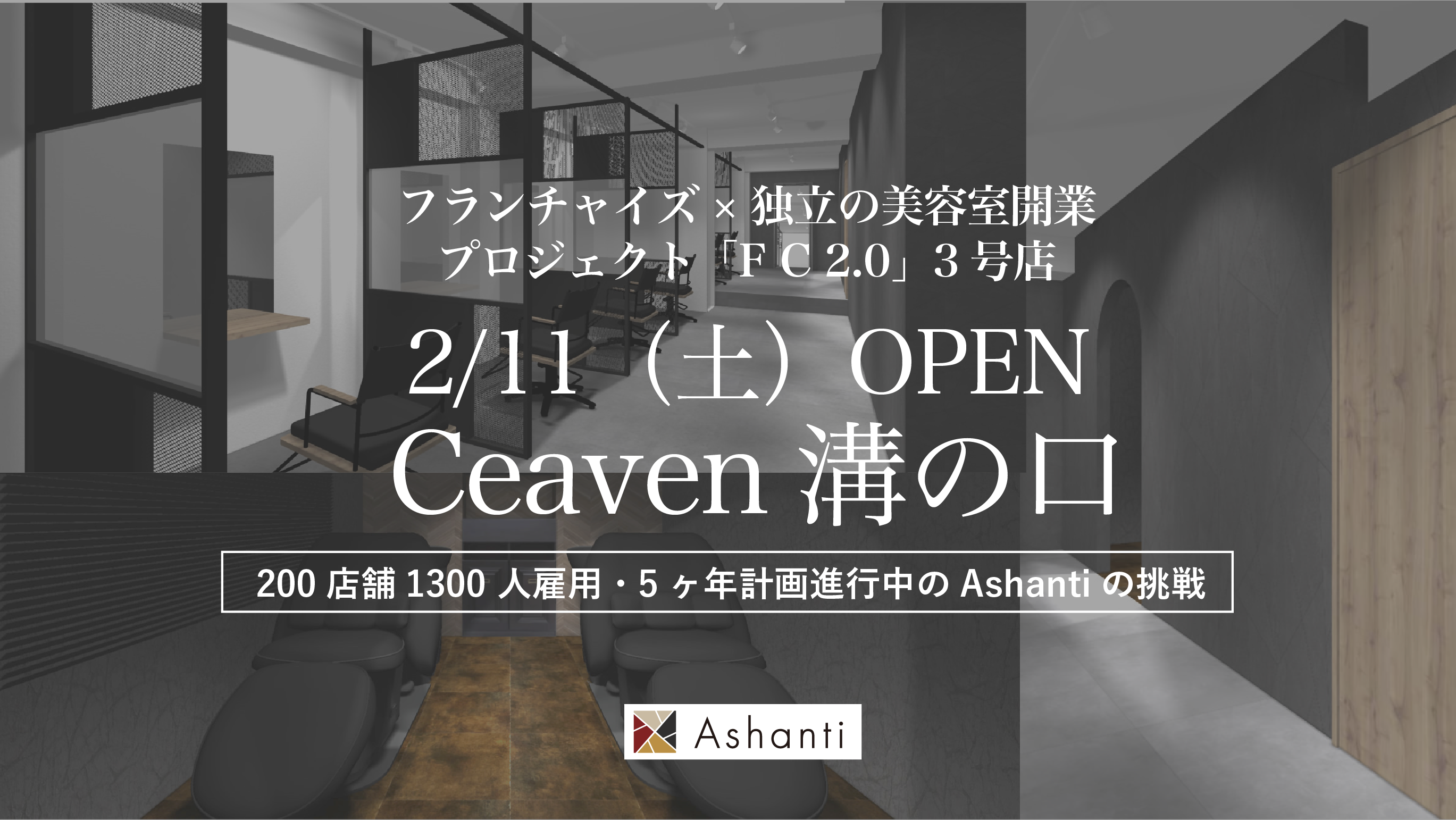 当社の『FC2.0』サロン第3号店として、2月11日(土)に「Ceaven(セヴン)」が川崎市高津区溝口にオープンしました。店名の綴(つづ)りは、お客様(Custmer)と働くスタッフ(Company)両方にとっての天国(Heaven)になるという意味を込め、読みは7つの海(全世界の海/Seven Seas)から世界展開の希望を託し名付けました。