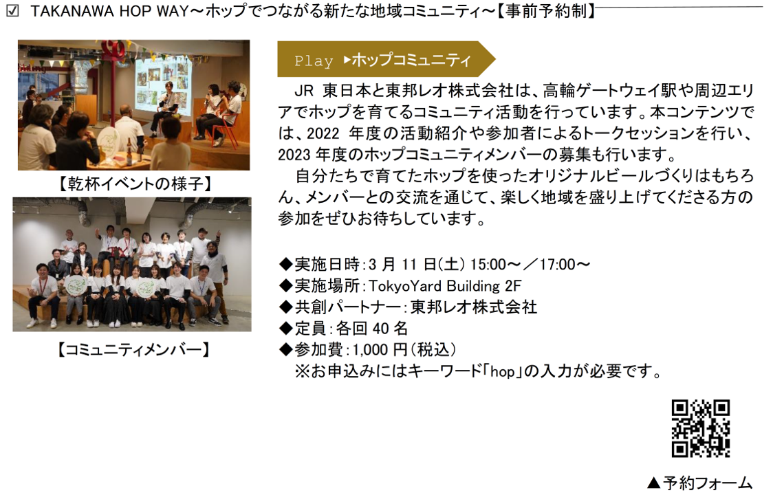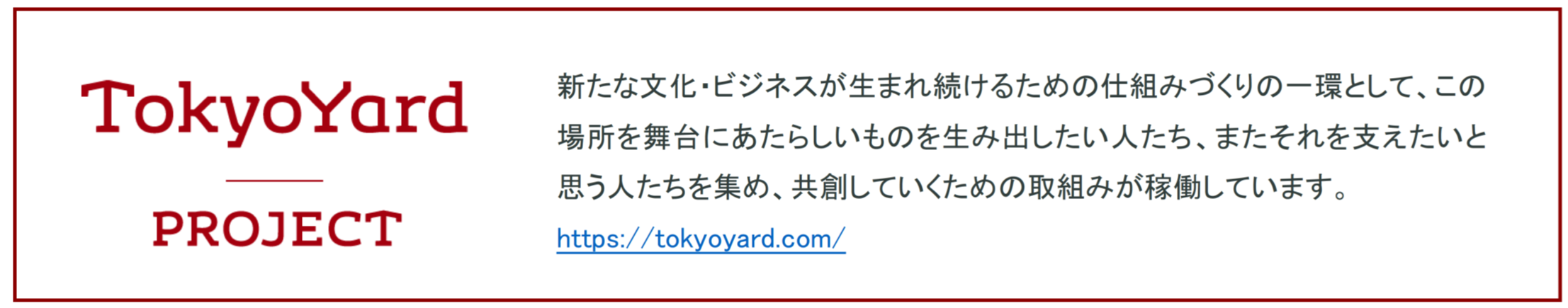 ※イベントの詳細はTokyoYard PROJECT公式Facebookに、2月16日以降順次掲載の告知記事をご確認ください。(URL:https://www.facebook.com/tokyoyard)