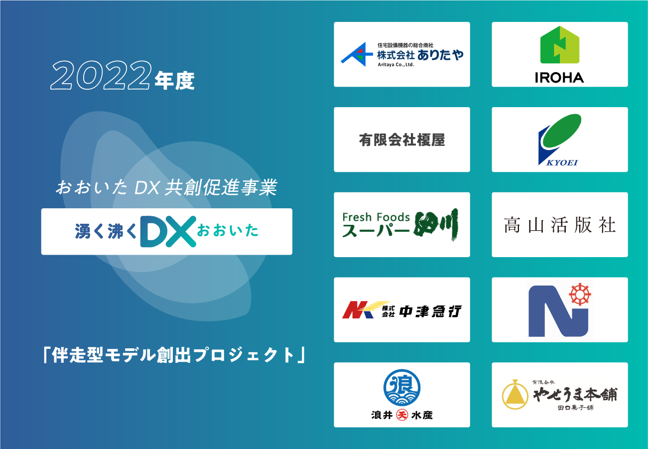本プロジェクトは、大分県内においてDXに本気で取り組む意欲のある事業者の中から10社を選出し、伴走型で事業者を支援する「コンサルティングパートナー」及び、DXに必要な技術を持つ「ソリューションパートナー」との共創により、DXを促進しビジネスの変革を実現するプロジェクトです。