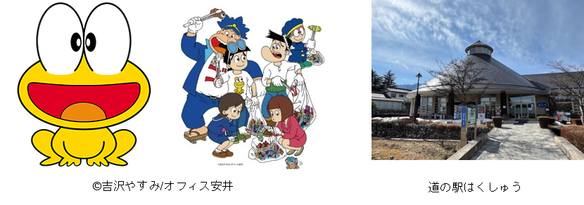 ピョン吉回収ボックスは、回収物が外から見えないタイプ、見えるタイプの立体2タイプ、そしてパネルタイプの計3種類あり、2月17日(金)より山梨県・道の駅はくしゅうの自動販売機コーナーに1週間ずつタイプを変えて設置します。