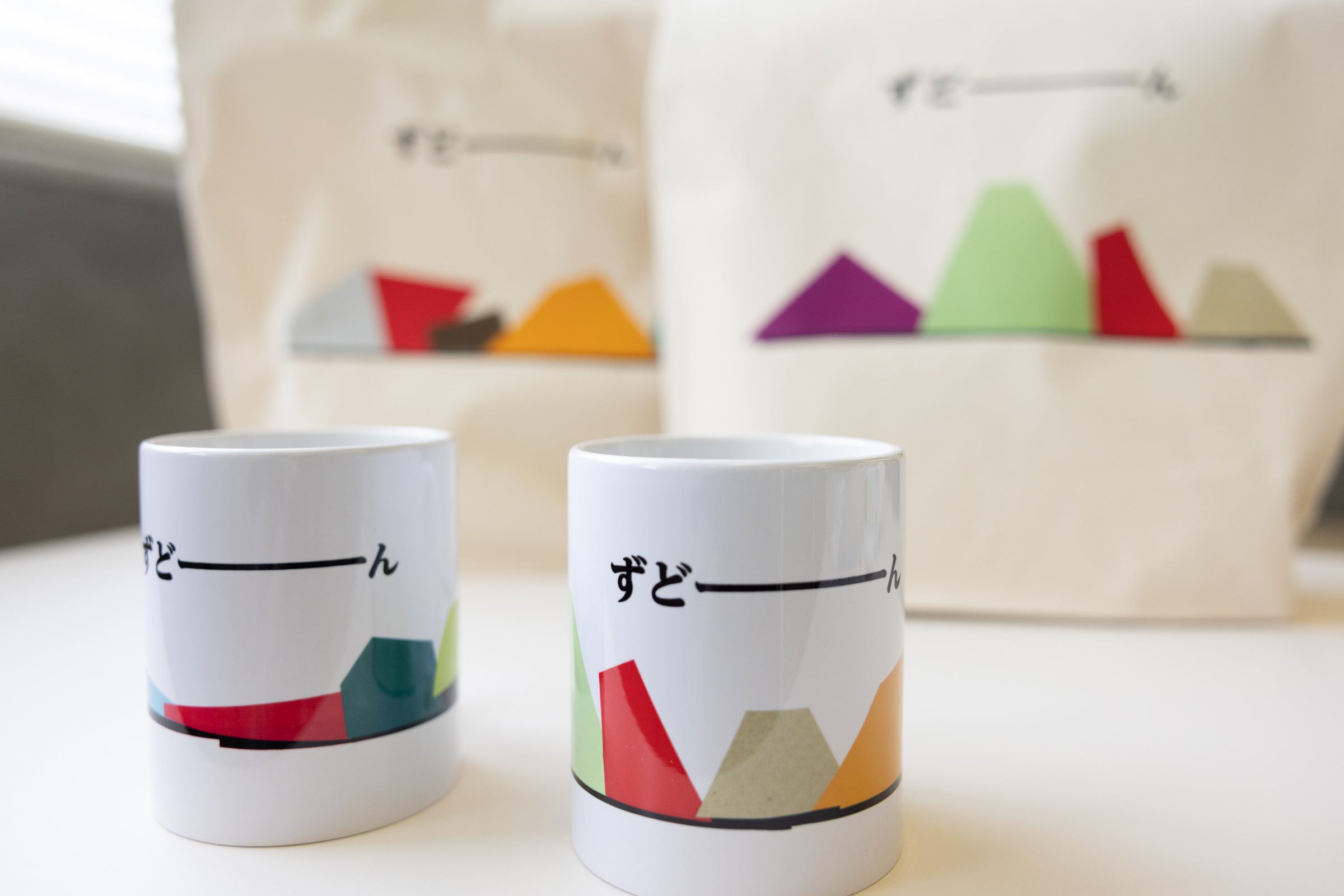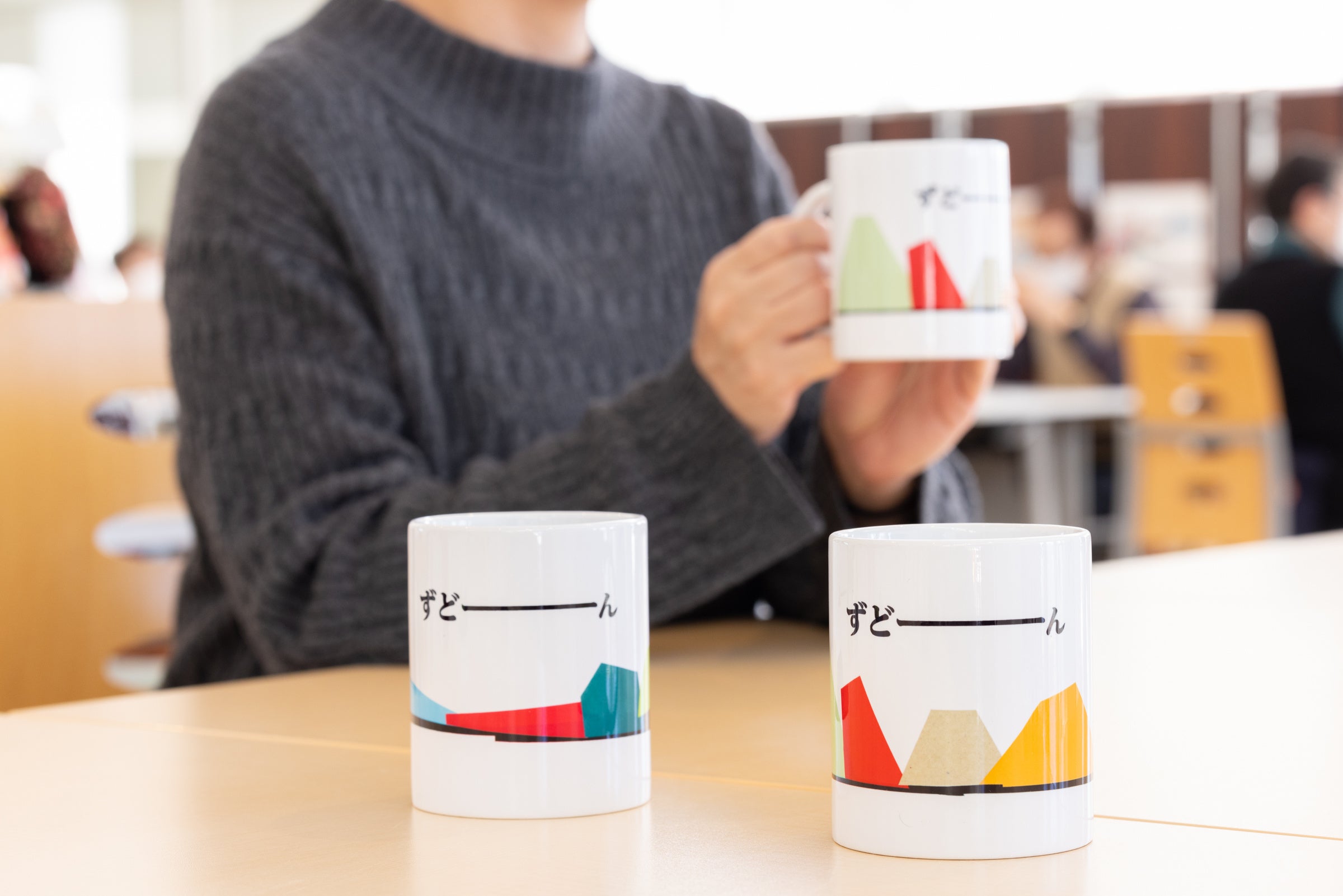 町の成人式でノベルティ(トートバッグ、マグカップ)を新成人にプレゼントしたほか、ステッカーを町内の公共施設で無料配布するなど、「ずどーん」のデザインがさまざまなところで展開し始めています。