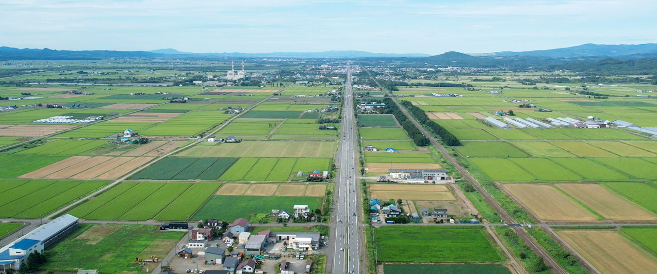 北海道奈井江町は、空知地方の中心部(札幌と旭川のほぼ中間地点)に位置する、人口約5,000人の町です。 国道12号線(総延長156.8kmの北海道の大動脈と言える道路)が町の中央を南北に縦貫し、美唄市から奈井江町を通り滝川市までの29.2kmが、日本一の直線道路となっています。そのちょうど中間地点に位置するのが奈井江町です。