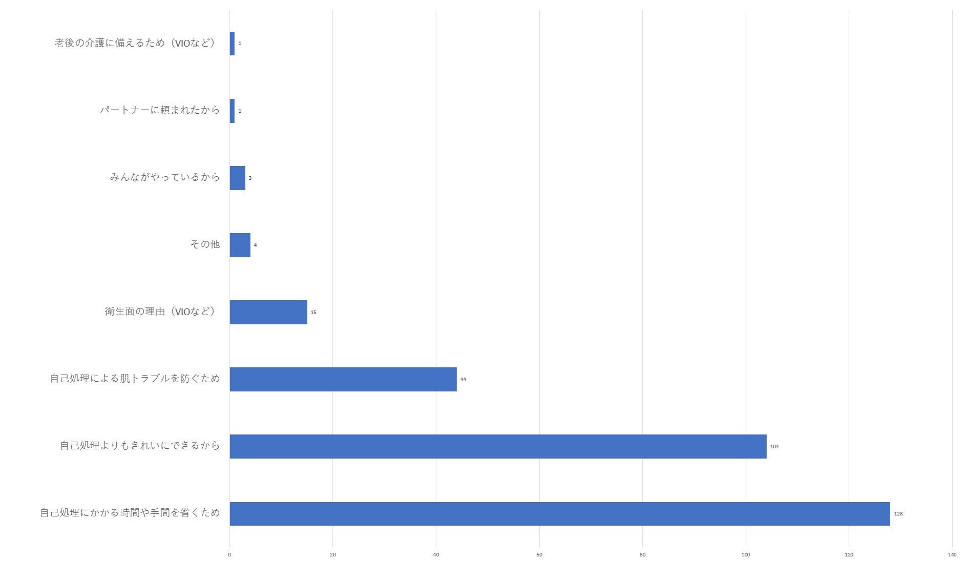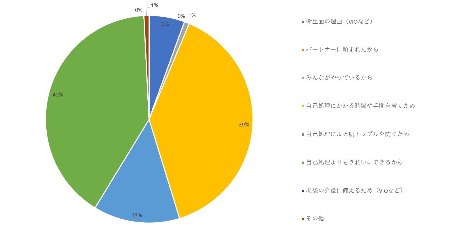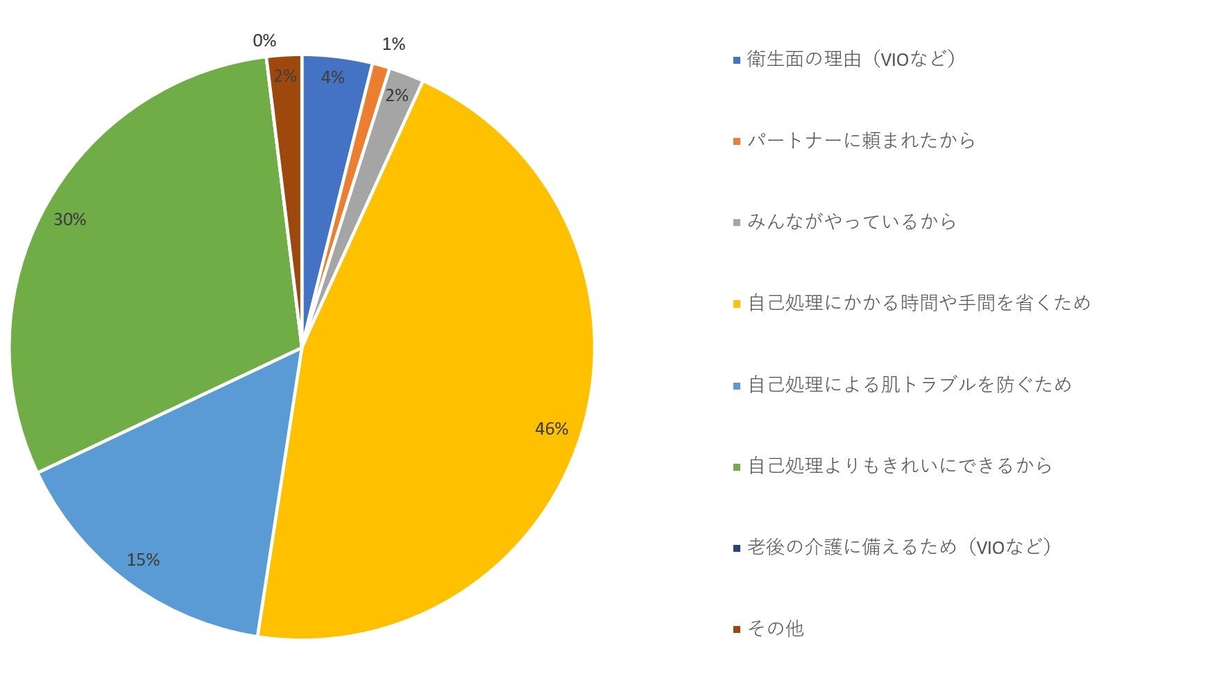 したがって、「エステ」と「医療」のどちらの手段にせよ、「パートナーに頼まれたから」や「みんながやっているから」など他者のためという理由よりも、自分自身のために脱毛を行っていることが読み取れます。