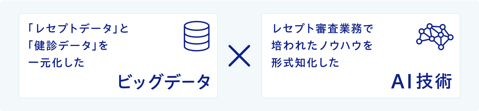 SmartDMは、「レセプトデータ」と「健診データ」とを一元管理したデータベースにAIを適用した、データヘルスの未来を拓くサービスです。弊社が長年培ってきたレセプト審査業務のノウハウを高度に形式知化したAI技術によって、一人ひとりの被保険者様に応じた疾病対策や予防医療対策をSmartDMから提案します。SmartDMにより、被保険者様に的確な医療の提供が可能となれば、医療費の削減が十分に期待でき、保険者様の経営強化が実現されます。