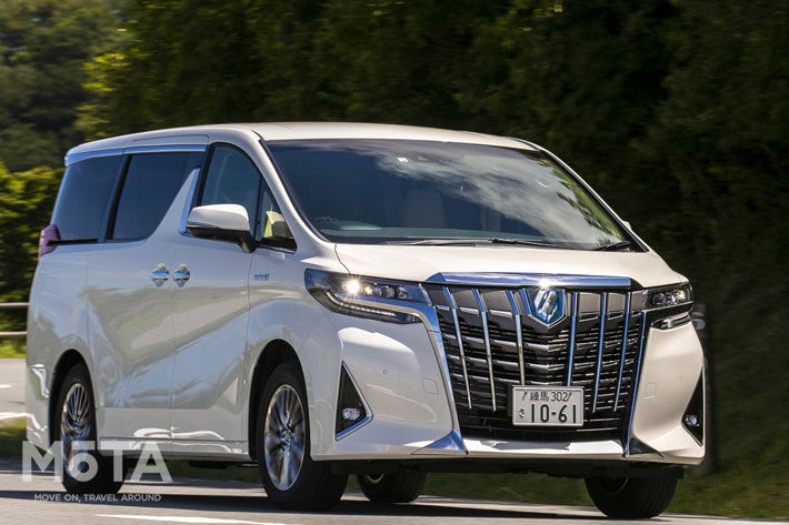 迫力満点の大柄なボディに、ラウンジのように高級感溢れる内装を組み合わせ、そのラグジュアリー感に高い評価を得ています。基本設計は「ヴェルファイア」と共通で、縦方向に長いデザインのフロントグリルが特長的。