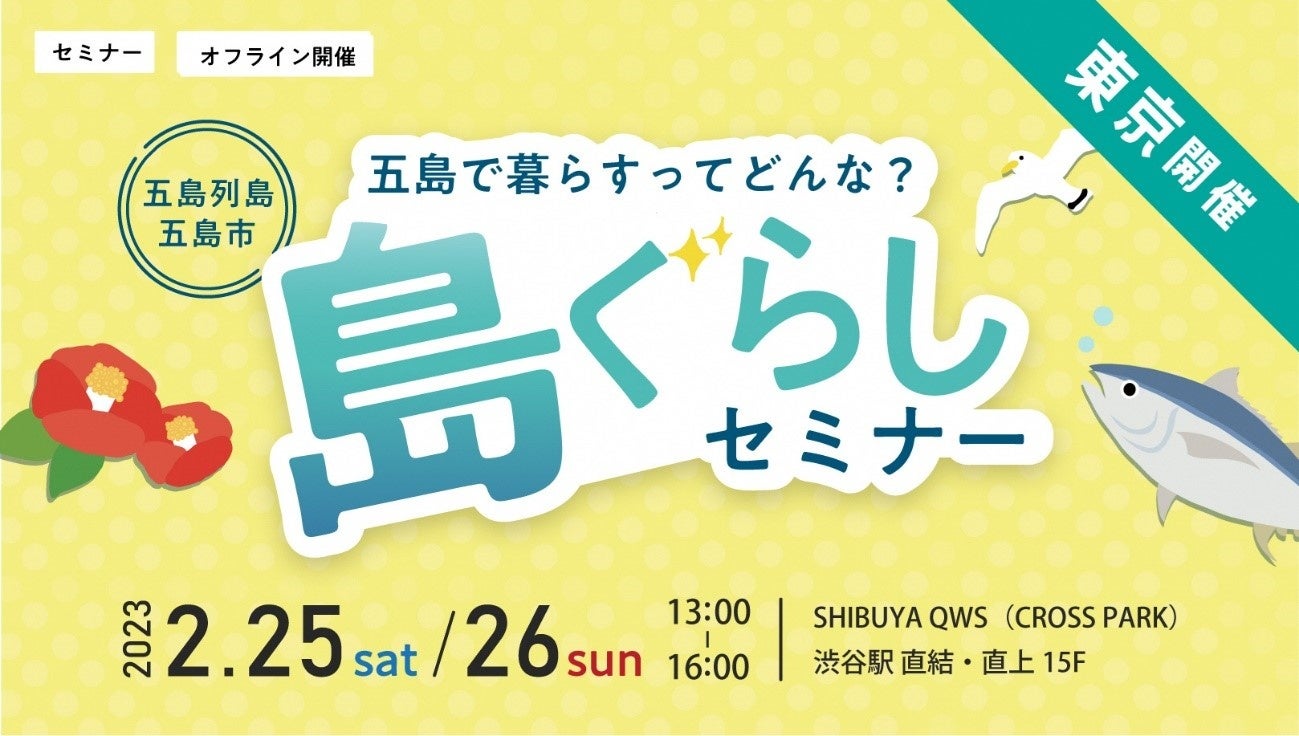 若者世代やファミリーの移住先に⼈気の五島市が、⾸都圏在住者に向けた特別なセミナー「島ぐらしセミナー」を渋⾕駅直結「SHIBUYA QWS」で開催します!基本情報からネットには載っていない現地のリアルな情報が満載のセミナーは、五島市に移住したい⽅はもちろん離島へ移住希望の⽅も必⾒。