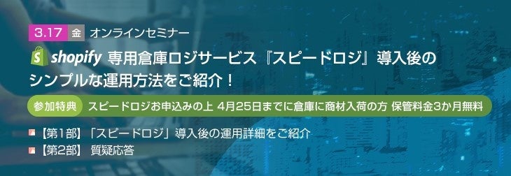 Shopifyでスタートアップ段階から、BtoBチャネル拡大時の課題など事業伸長に伴う運用など、ともに成長するスピードロジ運用の活用ポイントをご紹介します。