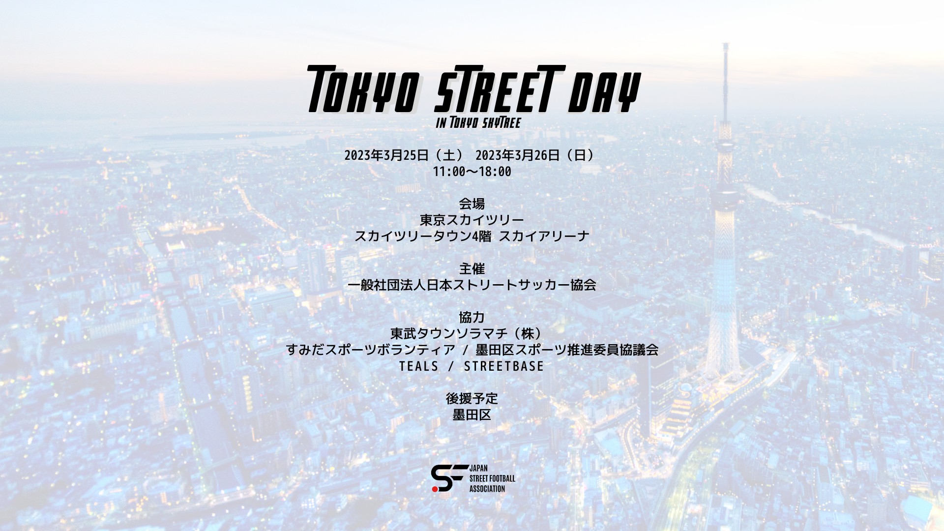 3月25日(土)、3月26日(日)一般社団法人日本ストリートサッカー協会は東京スカイツリー 4階スカイアリーナにてストリートサッカーイベント「TOKYO STREET DAY」を開催致します!