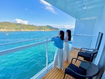 船内の隅々まで遊び心があふれており、神戸から小豆島までの約3時間の船旅が「あっという間」に感じられる、まさに「瀬戸内海に浮かぶテラスリゾート」です。